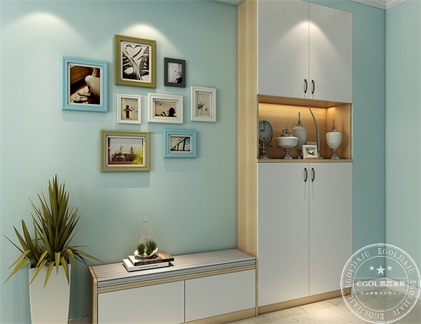 現在很多戶型在大門的位置都有一個凹槽的設計,看起來是很不美觀的,此時不妨可以定制這種隔斷鞋柜設計。不僅可以解決部分收納問題,還很美觀實用。