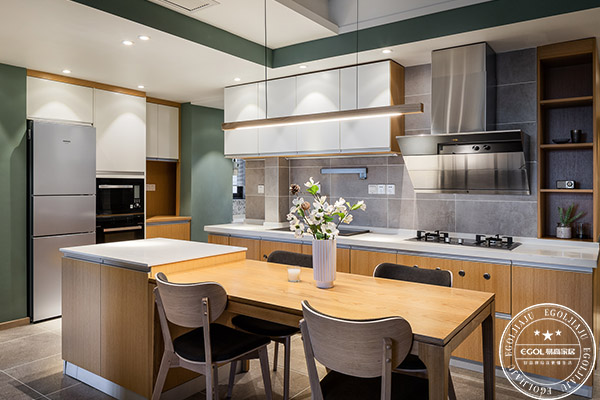 櫥柜直接買成品的其實很難碰到適合自己的,定制的櫥柜不僅僅在美觀上深處,使用感受也會大大的算手很多。完全不用擔心鍋碗瓢盆太多擺放不下。