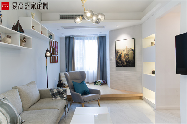 小空間的客廳也可以裝修出寬敞明亮的家居效果。