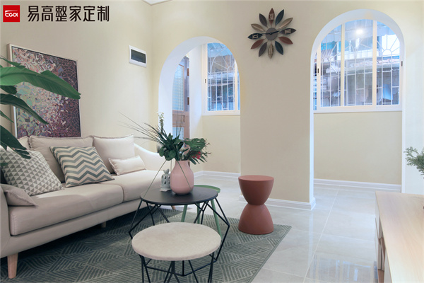 小客廳可以選擇不要電視柜,電視柜比較大會占用一部分的空間。看起來也會讓室內顯得比較擁擠。想要看電視的話,可以選擇安裝投影儀,看起來視覺效果也更加簡潔寬敞,還能增加觀影的娛樂性。空間小,家裝顏色搭配要選擇比較清新簡約的色系比較好,比如奶油色系、原木、白色以及奶咖等等,給人一種清爽大氣簡約的感覺,不會有壓迫感。